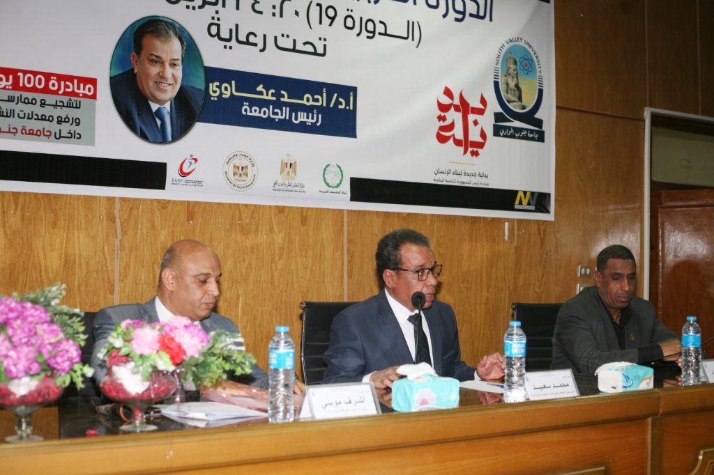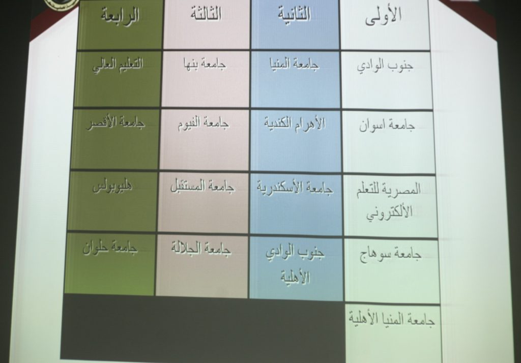 تحت رعاية الدكتور احمد عكاوي رئيس جامعة جنوب الوادى اجريت قرعة منافسات الدورة العربية التاسعة عشر لخماسيات كرة القدم التي تنظمها جامعة جنوب الوادي خلال الفترة من 20 الى 24 ابريل الجاري تحت رعاية الدكتور محمد أيمن عاشور وزير التعليم العالي، والدكتور أشرف صبحي وزير الشباب والرياضة، والدكتور أحمد عكاوي رئيس الجامعة ، والدكتور عمرو عزت سلامة أمين عام اتحاد الجامعات العربية. جاء ذلك بحضور الدكتور محمد سعيد نائب رئيس الجامعة لشئون خدمة المجتمع وتنمية البيئة ، و الدكتور اشرف موسى عميد كلية التربية الرياضية مدير البطولة ووفود الجامعات المشاركة بالبطولة