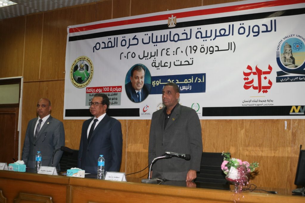اجراء قرعة الدورة العربية التاسعة عشر لخماسيات كرة القدم بجامعة جنوب الوادي