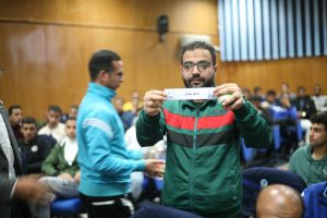 شاهد فعاليات القرعه محمد وليد مدير رعايه الطلاب ومبارك احمد محمود مدير العلاقات العامه والوفود المشاركه واعضاء هيئه التحكيم