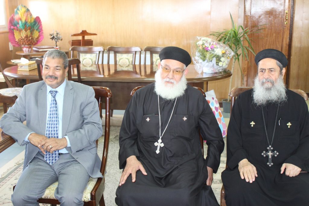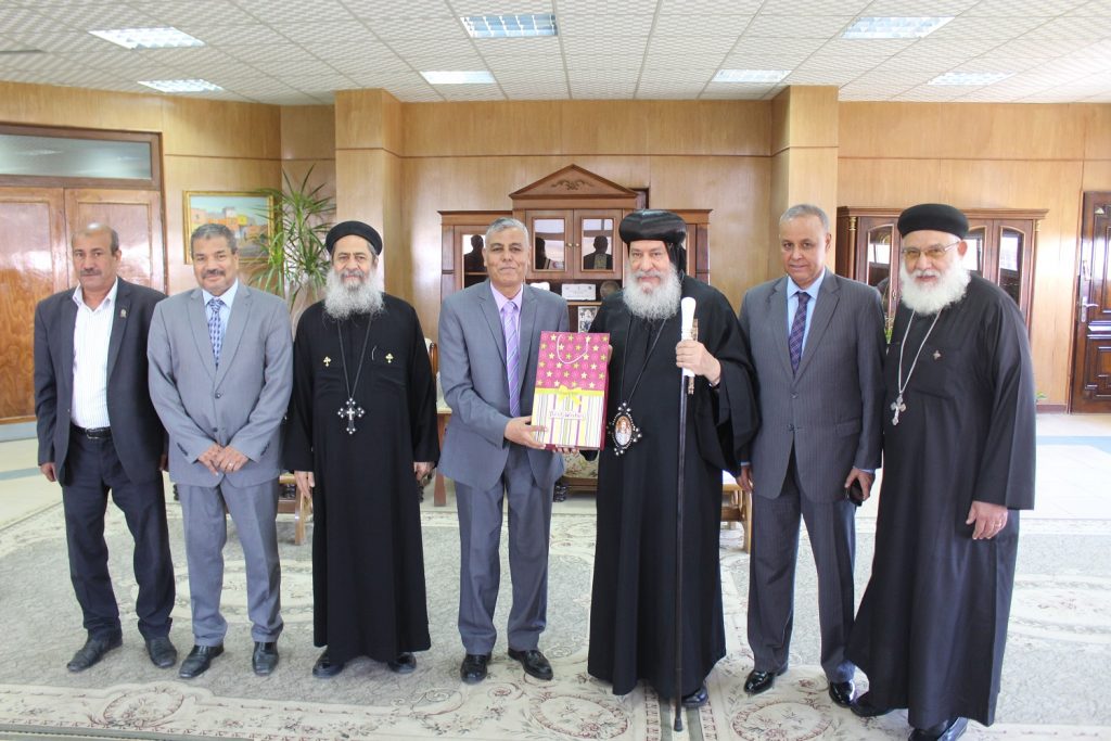 استقبل الدكتور يوسف الغرباوي، رئيس جامعة جنوب الوادى، وفد مطرانية قنا للأقباط الارثوذكس ، والذى ضم الأنبا شاروبيم أسقف قنا وتوابعها والقمص بيشوى ناروز والقمص أمونيوس فارس وكيلا المطرانية، حيث قدم الوفد التهنئة لرئيس الجامعة على ثقة القيادة السياسية وتعيينه رئيساً لجامعة جنوب الوادى، وذلك بحضور الدكتور محمود خضاري معله نائب رئيس الجامعة لشئون الدراسات العليا والبحوث السابق. وهنأ الأنبا شاروبيم أسقف قنا وتوابعها، رئيس الجامعة، بحلول عيد الأضحى المبارك، مؤكداً علي عمق المشاعر بين المسلمين والمسيحيين التي تعكس جوهر الروح المصرية السمحة التي يشهد لتماسكها التاريخ، معرباً عن تمنياته بالتوفيق لرئيس الجامعة فى مهمته خلال المرحلة المقبلة، مؤكداً على دعم المجتمع للجامعة لتحقيق رسالتها خاصة أن الجامعة لا تدخر جهداً في تقديم يد العون لمجتمعها المحيط لتحقيق طفرة تنموية داخل إقليم جنوب الصعيد. من جانبه أعرب الدكتور يوسف الغرباوى رئيس جامعة جنوب الوادى، عن سعادته بالزيارة، معرباً عن خالص شكره وتقديره للأنبا شاروبيم أسقف قنا وتوابعها ووكيلا المطرانية متمنياً من المولى عز وجل أن يعيد علينا وعلى مصرنا الحبيبة هذه الأيام المباركة بالخير واليمن والبركات تحت ظل قيادتها الرشيدة.