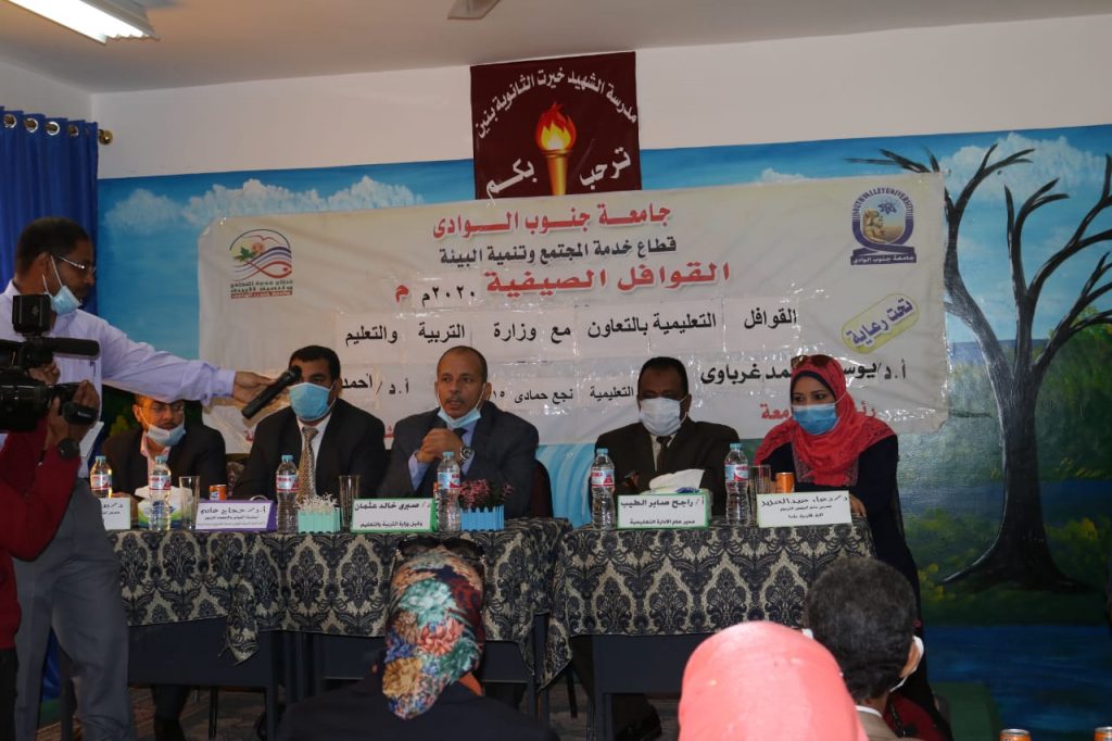 نظمت جامعة جنوب الوادى، تحت رعاية الدكتور يوسف غرباوى رئيس الجامعة، والدكتور أحمد كمال نصارى نائب رئيس الجامعة لشئون خدمة المجتمع وتنمية البيئة، قافلة تعليمية إلى مدينة نجع حمادى بمشاركة أعضاء هيئة التدريس بكلية التربية بقنا، بإشراف الدكتور محسوب عبدالقادر عميد الكلية والدكتور حجاج غانم وكيل الكلية لشئون خدمة المجتمع وتنمية البيئة.