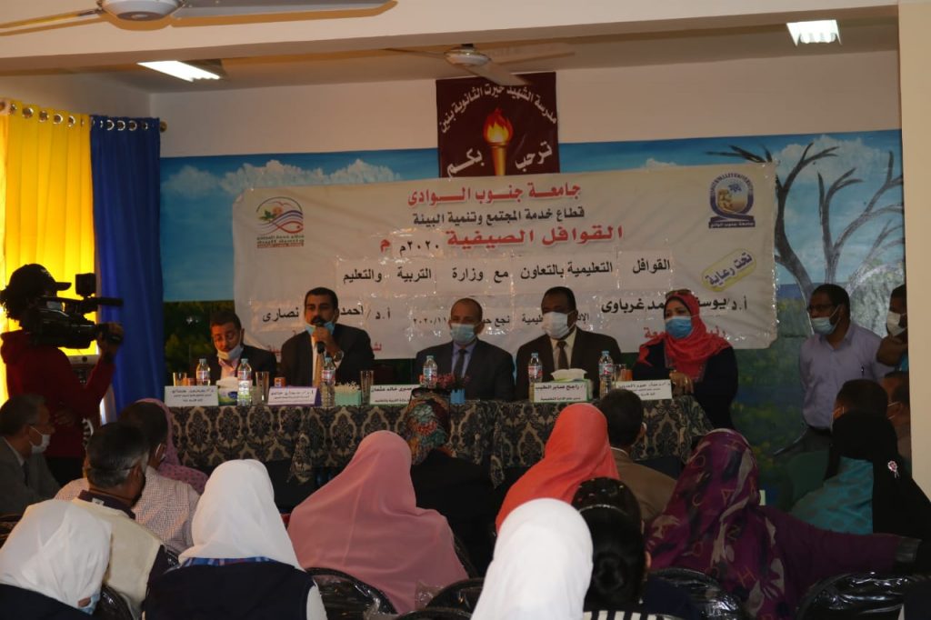 وخلال القافلة، تحدث الدكتور حجاج غانم، وكيل كلية التربية لشؤون خدمة المجتمع وتنمية البيئة، عن التعليم في فترة كورونا، وتحدثت الدكتوره دعاء عبدالعزيز عن المشكلات السلوكية عند الأطفال وكيفية رصدها والتعامل معها ، بينما تحدث الدكتور محمد همام، عن استراتيجيات التدريس الحديثة، وتناول الدكتور صبري خالد عثمان ، وكيل وزارة التربية والتعليم بقنا، الجوانب الإدارية التعليمية في فترة كورونا.