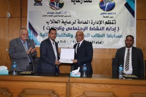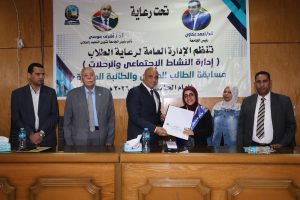 وأسفرت نتائج مسابقة الطالب المثالي (بنين) عن فوز الطالب أنور محمد عبد الله مرسي من كلية الطب البشرى بالمركز الأول، والطالب حلمي عبد الله حلمي من كلية التمريض بالمركز الثاني، والطالب أحمد ربيع مصطفى ربيع من كلية التربية النوعية بالمركز الثالث.