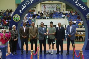 وقام الدكتور محمد سعيد نائب رئيس الجامعة والدكتور اشرف موسي مدير البطولة بتوزيع جوائز البطولة للفرق الثلاث الاولى و حصل اللاعب عبد الرحمن محمد خلف من جامعة المنيا على كاس افضل لاعب في البطولة كما حصل اللاعب على عبد الله راضى من جامعة بنها على كأس افضل حارس في البطولة بينما حصل اللاعب محمد اسامة من جامعة بنها على كاس هداف البطولة