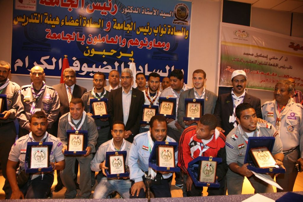 شهد الدكتور عباس منصور رئيس جامعة جنوب الوادي حفل ختام معسكر العمل الدولي الثامن لجوالي وجوالات الجامعات العربية والذي نظمته الجامعة في الفترة من 20-25 فبراير الجاري بمشاركة 18 جامعة حكومية وخاصة حيث اكد رئيس الجامعة علي الدور الايجابي الذي ساهم فيه جوالي وجوالات الجامعات بزراعة 18 فدان بحوالي 4000 شجرة زيتون خلال فترة قصيرة جداً وهذا يعكس شعار الجوالة والخدمة العامة في خدمة المجتمع واشاد بالعمل الجماعي والترابط خلال المعسكر وهذا ما يحتاجه الوطن في هذه المرحلة هو توحيد الجهود لتحقيق التنمية في كافة المجالات وطالب رئيس الجامعة القائمين علي المعسكر بتوزيع العمل بحيث يشمل كافة مساحات الجامعة حتي يتمكن الطلاب من مشاهدة زملائهم الجوالين ليكون حافزاً لهم للعمل التطوعي وقدم القائد محمد بن راشد الجهني قائد التدريب الدولي بالمملكة العربية السعودية الشكر لرئيس الجامعة علي الجهد المبذول لخدمة الانشطة الطلابية واشاد بالمعسكر الدولي الثامن للجوالة والدور الذي اداه المشاركين من الجامعات في تشجير الجامعة وفي نهاية الحفل قام الدكتور عباس منصور رئيس الجامعة باهداء درع المعسكر لمحمد بن راشد الجهني ورؤساء الوفود من الجامعات المشاركة وقام محمد بن راشد الجهني باهداء رئيس الجامعة شعار يحمل علم المملكة العربية السعودية حضر الاحتفالية القائد عادل ابراهيم زاهر مفوض التدريب بالاتحاد العام للكشافة والمرشدات ومطاوع فكري مدير عام رعاية الشباب واسامة عبد الراضي قائد عام المعسكر ورؤساء الوفود وجوالي وجوالات الجامعات المشاركة .