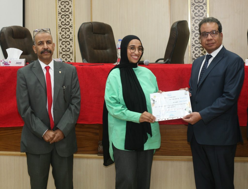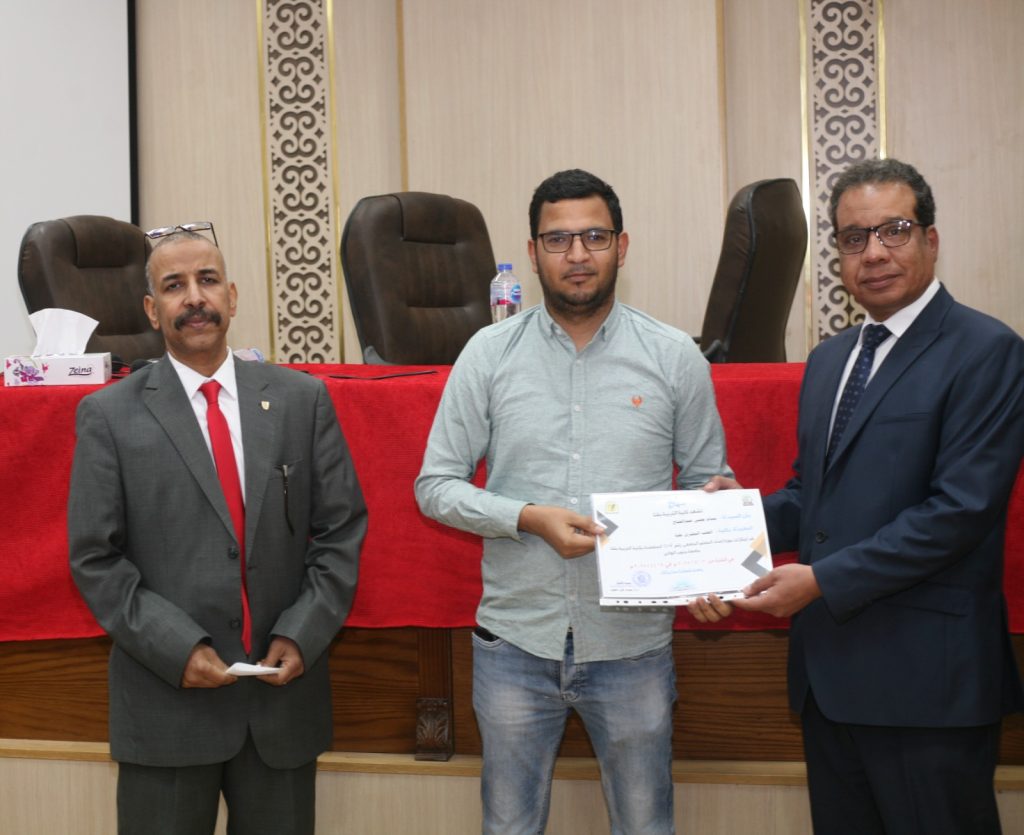 وفي ختام الدورة التدريبية قام نائب رئيس الجامعة وعميد كلية التربية بتسليم الشهادات على المتدربين وعددهم ٦١ متدربا من مختلف كليات الجامعة .