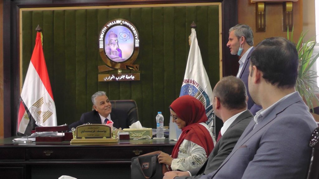 التقى الدكتور يوسف غرباوي رئيس جامعة جنوب الوادي بأعضاء هيئة التدريس ومعاونيهم بكلية العلاج الطبيعي حيث ناقش رئيس الجامعة اخر المستجدات فى تجهيزات مبنى الكلية الجديد ومركز العلاج الطبيعي والتأهيل وسير العمل فيهم وتناول اللقاء استعدادات الكلية للعام الجامعي الجديد وتجهيز القاعات والمدرجات والانتهاء من اعمال الصيانة واعلان الجداول وشدد رئيس الجامعة خلال اللقاء على تطبيق الاجراءات الاحترازية والتعقيم لكل الاماكن بالكلية بصفة مستمرة والتيسير على الطلاب فى الخدمات التى تقدم لهم. . واطلع الدكتور يوسف غرباوى رئيس الجامعة عن استعدادات ادارة الكلية لعقد المؤتمر العلمي الثالث للكلية والمزمع عقده فى نوفمبر القادم وايضا الاعداد لحفل تخرج الدفعه الاول للكلية الذى يقام على هامش المؤتمر وتم خلال اللقاء مناقشة لائحة الكلية بجامعة جنوب الوادي الاهلية.