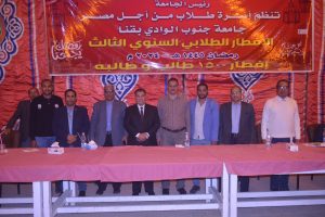 شارك الدكتور أحمد عكاوي رئيس جامعة جنوب الوادي حفل الإفطار الجماعي الذي نظمته أسرة طلاب من أجل مصر لأكثر من ١٥٠٠ طالب وطالبة بجامعة جنوب الوادي.