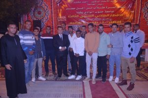 ومن جانبه ثمن الدكتور محمد سعيد نائب رئيس الجامعة لشئون خدمة المجتمع وتنمية البيئة ورائد عام الأسرة خلال شهر رمضان من تنظيم حملة توزيع شنطة رمضان لأكثر من ٦٠٠ طالب وطالبة وايضا تنظيم افطار جماعي. وقدم الشكر على مشرفى الحفل الدكتور محمد همام رائد الاسرة والدكتورة بدرية حسن رائد فتيات اسرة طلاب من اجل مصر