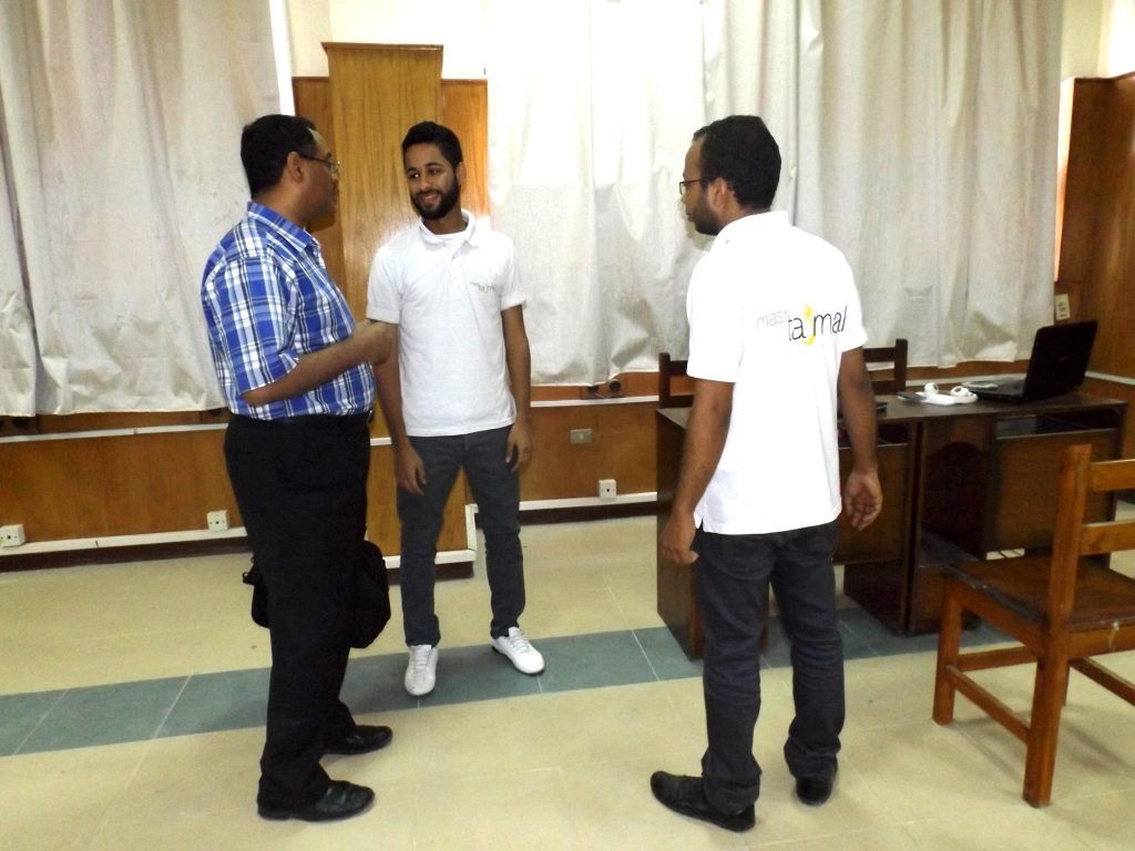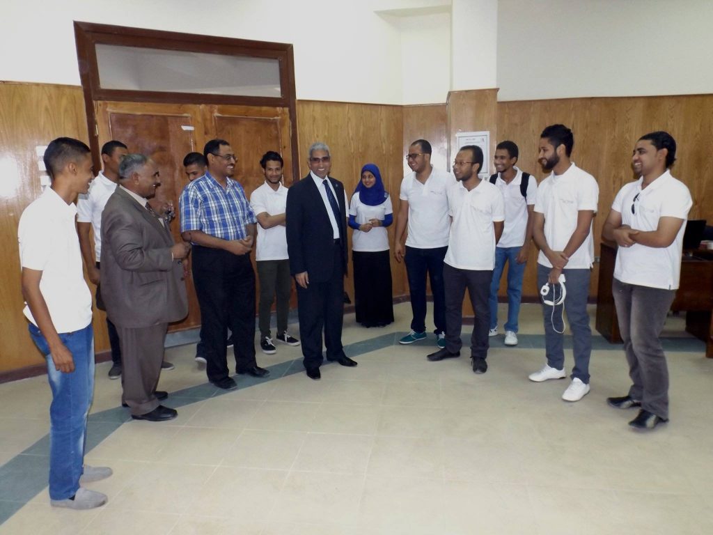 قام الدكتور عباس منصور رئيس الجامعة والدكتور سيد طه ناب رئيس الجامعة لقطاع شون البيئة وخدمة المجتمع والدكتور محمد عمران المدير التنفيذى لمركز التاهيل الوظيفي بحضور المقابلات الشخصية للاعضاء الجدد المنضمين لفريق مصر تعمل وهى مبادرة شبابية برعاية شركة مايكرو سوفت العالمية ووزارة الشباب والتى تطبق بخمس جامعات مصرية جنوب الوادى عين شمس القاهرة اسوان الازهر