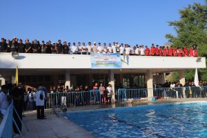 يشارك بمنافسات البطولة 150 طالب وطالبة من مختلف كليات الجامعة ، وتضمنت فعاليات الافتتاح طابور عرض الكليات المشاركة وفقرات وعروض مائية قدمها طلاب قسم التدريب الرياضي وعلوم الحركة بكلية التربية الرياضية بإشراف الدكتور محمد همام حيث قدموا عرضا بعنوان ( تحيا مصر ) وعرضا بعنوان ( مصر مرفوعة الرأس)