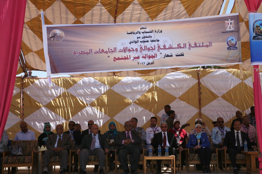 أفتتح الدكتور عباس منصور رئيس جامعة جنوب الوادي فعاليات الملتقى الكشفي لجوالي وجوالات الجامعات المصرية ” الوجه القبلي ” والذى تنظمه وزارة الشباب والرياضة بالتعاون مع جامعة جنوب الوادي تحت شعار ” الجوالة عبر المجتمع ” والذى يقام تجت رعاية المهندس خالد عبد العزيز وزير الشباب والرياضة والدكتور عباس منصور رئيس الجامعة في الفترة من 1-7 ابريل 2017 بمشاركة جامعات الأزهر فرع أسيوط وجنوب الوادي والفيوم وسوهاج ووزارة التعليم العالي ممثلا عنها المعهد العالي للخدمة الاجتماعية بقنا وفى كلمته قدم الدكتور عباس منصور رئيس الجامعة الشكر لوزير الشباب والرياضة على دعمه المستمر لشباب الجامعات في كل الأنشطة الطلابية وعلى إقامة هذا الملتقى الكشفي في رحاب جامعة جنوب الوادي التي ترحب دائما بتنظيم الملتقيات القميه لأنها تساهم في دعم التواصل وتقوى أواصر الصداقة بين شباب الجامعات وأشاد رئيس الجامعة بالدور الإيجابي الذى يقوم به شباب الجوالة في خدمة الجامعات والمجتمع لان دورهم مستمر حتى بعد التخرج ورحب رئيس الجامعة بالجامعات المشاركة في الملتقى الكشفي.