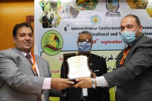 واهدى الدكتور محمد وائل عبدالعظيم عميد كلية الطب البيطري  ورئيس المؤتمر درع المؤتمر للدكتور يوسف غرباوي رئيس الجامعة ، والدكتور أحمد عكاوي نائب رئيس الجامعة لشئون الدراسات العليا والبحوث
