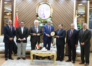 رئيس جامعة جنوب الوادي يهدي درع الجامعة لرئيس الاتحاد المصري لكرة القدم