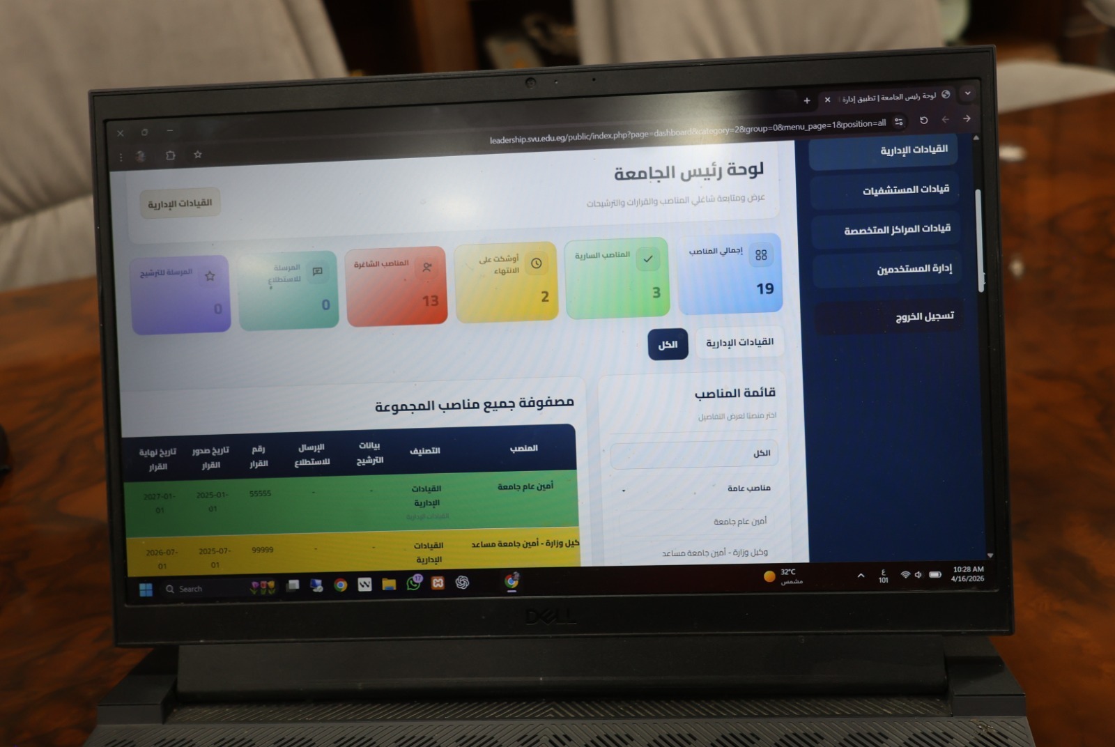 إدارات الجامعة