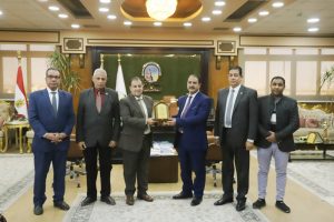 استقبل الدكتور أحمد عكاوي رئيس جامعة قنا وفد البنك الزراعي المصري، بحضور الدكتور محمد سعيد نائب رئيس الجامعة لشئون خدمة المجتمع، والدكتور حسين أبو المجد مدير مركز خدمات ذوي الإعاقة بالجامعة، و ضم وفد البنك الزراعي كلًا من الأستاذ يحيى فراج رئيس قطاع البنك الزراعي بقنا، والأستاذ علي عبد الله مدير التجزئة المصرفية، والأستاذ علاء سليمان مدير متابعة الفروع، وذلك لبحث وتعزيز آفاق التعاون بين البنك والجامعة في مختلف المجالات.