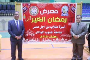 تفقد الدكتور احمد عكاوي رئيس جامعة جنوب الوادي والدكتور محمد سعيد نائب رئيس الجامعة لشئون خدمة المجتمع وتنمية البيئة ورائد عام اسرة طلاب من اجل مصر معرض اسرة طلاب من اجل مصر لتجهيز شنط رمضان وتوزيعها على المستحقين بجامعة جنوب الوادي