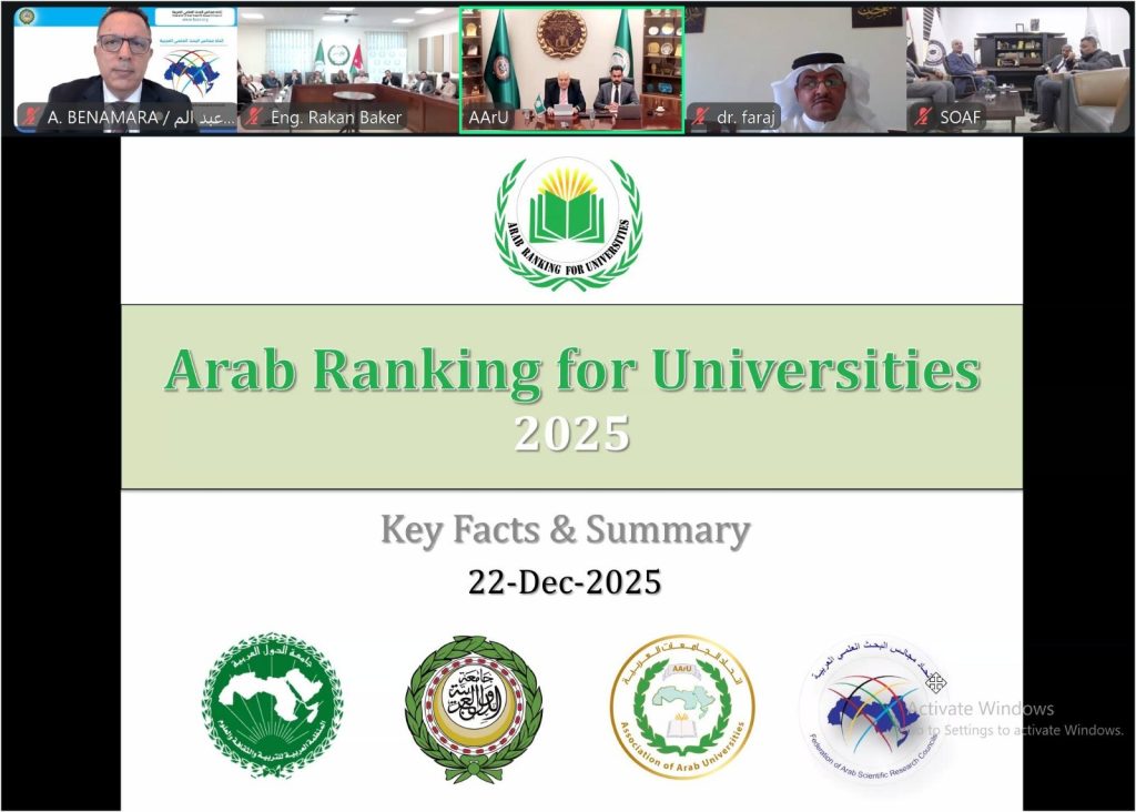 هذا وجرى الإعلان عن نتائج التصنيف بحضور معالي الأستاذ الدكتور عبد المجيد بنعماره، الأمين العام لاتحاد مجالس البحث العلمي العربية، عبر تقنية الاتصال المرئي (زووم)، في تأكيد على الدور المحوري الذي يضطلع به الاتحاد في دعم المبادرات العربية الهادفة إلى تطوير منظومة البحث العلمي والارتقاء بجودة التعليم العالي في المنطقة العربية.
