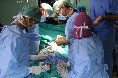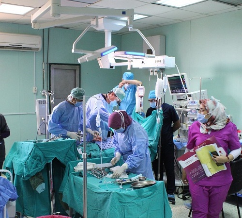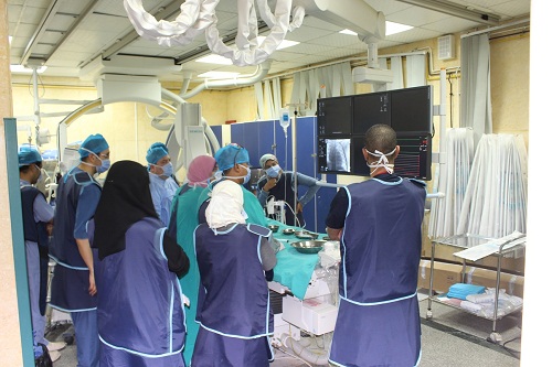 كما أضاف الدكتور حسام اسماعيل رئيس وحدة قسطرة القلب بمسشفى قنا الجامعي أن وفد مؤسسة منتدى للمساعدات الانسانية ويضم الدكتور عبد الله ايرديم والدكتور جناب زايباك قام باجراء 24 عملية قسطرة قلبية للأطفال في ضوء أعمال القافلة الانجليزية وعقد ورش عمل شهدت حضور اعضاء هيئة التدريس ومعاونيهم بقسم الأمراض الباطنة وقسم طب الأطفال بطب قنا والمستشفى الجامعي في سبيل استحداث تلك الخدمة الطبية بوحدة القسطرة القلبية والعمل على استمرارها طوال العام، وأضاف الدكتور احمد العبد رئيس قسم الأطفال بطب قنا أن من أهم الحالات التي تم اجراؤها حالتين توسيع الشريان الأورطي بالبالون شهدت أحداهما تركيب دعامة للشريان كما تم علاج حالة ضيق شديد بالصمام الرئوي مع فشل لعضلة القلب وحالة وصلة شريانية مع فشل بعضلة القلب وتم الغلق بالدعامة بالاضافة الى تثبيت العديد من الدعامات لرتق ثقوب الجدار الاذيني والبطيني والوصلات الشريانية. كما اضاف الدكتور جاد سيد جاد رئيس قسم التخدير والعناية المركزة ان جميع اعضاء هيئة التدريس ومعاونيهم والاطباء بالقسم تواجدوا على مدار الساعة سواء للمشاركة بتلك العمليات التي تتطلب مهارة خاصة من جميع المشاركين بها او لمتابعة حالة المرضى قبل وبعد اجراء العملية. وأضاف الدكتور حمدي محمد حسين عميد كلية الطب بقنا أنه تم عقد العديد من ورش العمل التدريبية لاعضاء هيئة التدريس ومعاونيهم بكلية الطب واطباء المستشفى الجامعي للارتقاء بمستوى الخدمة الطبية خصوصاً في مجال جراحات القلب المفتوح وعمليات القسطرة التداخلية نظراً لكثرة الاقبال عليها في الفترة الاخيرة في ظل وجود عدد محدود من المستشفيات والمراكز الطبية التي تجري مثل تلك العمليات خصوصاً بصعيد مصر. وأشاد الدكتور أسامة حسين عبد اللاه بالتطور النوعي الذي شهده قسم جراحة القلب والصدر ووحدة القسطرة القلبية بادخال مثل تلك العمليات التي تجرى للمرة الأولى للأطفال خصوصاً في مجال القسطرة القلبية كما أجرت القافلة الطبية والتي ضمت مجموعة من خبراء جراحة القلب والصدر وخبراء امراض الباطنة والقلب والقسطرة القلبية للأطفال 11 جراحة قلب مفتوح للأطفال بنسبة نجاح 100% وتتماثل جميع تلك الحالات الآن للشفاء بالاقسام الداخلية ومتابعتها على مدار الساعة. وأضاف الدكتور كرم مسلم رئيس قسم جراحة القلب والصدر أن الفريق الطبي لمؤسسة Muntada Aid بقيادة الدكتور احمد ساسمازيل والدكتور امير شيخ اساتذة جراحة القلب والدكتور عدنان يوكسك استاذ التخدير وبالاشتراك مع اعضاء هيئة التدريس ومعاونيهم بقسم جراحة القلب والصدر والتخدير بطب قنا والمسشتفى الجامعي تمكن من اجراء 11 عملية جراحية معقدة لأطفال تراوحت فئاتهم العمرية من سنتين حتى 11 سنة حيث تم اختيار الحالات الاكثر احتياجاً لمثل تلك العمليات المعقدة. وأضاف الدكتور محمد عبد الباري استاذ مساعد جراحة القلب والصدر بطب قنا انه تم اجراء العديد من جراحات قلب الاطفال المعقدة ومنها حالات استئصال الغشاء تحت الأورطي واصلاح الثقوب بين البطينين والأذينين بجانب حالات رباعي فالوت ومتلازمة ايبيشتين وضيق وارتجاع بالصمام الميترالي والوصلات الوريدية. كما أضاف الدكتور حسام اسماعيل رئيس وحدة قسطرة القلب بمسشفى قنا الجامعي أن وفد مؤسسة منتدى للمساعدات الانسانية ويضم الدكتور عبد الله ايرديم والدكتور جناب زايباك قام باجراء 24 عملية قسطرة قلبية للأطفال في ضوء أعمال القافلة الانجليزية وعقد ورش عمل شهدت حضور اعضاء هيئة التدريس ومعاونيهم بقسم الأمراض الباطنة وقسم طب الأطفال بطب قنا والمستشفى الجامعي في سبيل استحداث تلك الخدمة الطبية بوحدة القسطرة القلبية والعمل على استمرارها طوال العام، وأضاف الدكتور احمد العبد رئيس قسم الأطفال بطب قنا أن من أهم الحالات التي تم اجراؤها حالتين توسيع الشريان الأورطي بالبالون شهدت أحداهما تركيب دعامة للشريان كما تم علاج حالة ضيق شديد بالصمام الرئوي مع فشل لعضلة القلب وحالة وصلة شريانية مع 