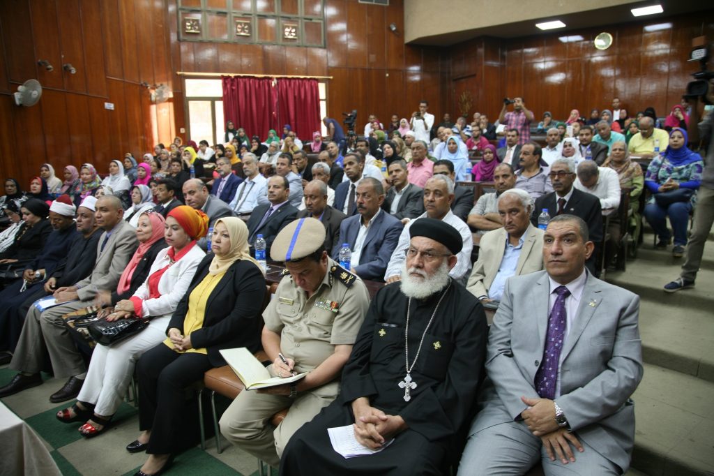 شهد اللواء عبد الحميد الهجان محافظ قنا والدكتور عباس منصور رئيس جامعة جنوب الوادى بحضور اللواء أيمن السيسى سكرتير عام محافظة قنا مؤتمر ” المرأة صانعة السلام ” معاً ضد التطرف والإرهاب ” والذى نظمه فرع المجلس القومى للمرأة بقنا تحت رعاية محافظ قنا ، أكد اللواء عبد الحميد الهجان محافظ قنا أن المرأة المصرية لها دور كبير فى نشر السلام والمحبة بين الناس فهى صانعة السلام ولم تكن بمعزل عن الأحداث التى مرت بها البلاد من تطرف وإرهاب وغلو وكيف قدمت أبناءها فداء للوطن ، واشار إلى إهتمام رئيس الجمهورية بالمرأة فى كافة المناسبات وأن عام 2017 هو عام المرأة لذا يجب وضع المرأة فى مكانتها اللائقة ، وأكد أننا لن نقف مكتوفى الأيدى ننظر إلى الإرهاب دون إتخاذ مواقف إيجابية ونكون فى خندق واحد مع رجال الجيش والشرطة وذلك بالحوارات الفكرية التى نحارب بها الفكر المتطرف ،