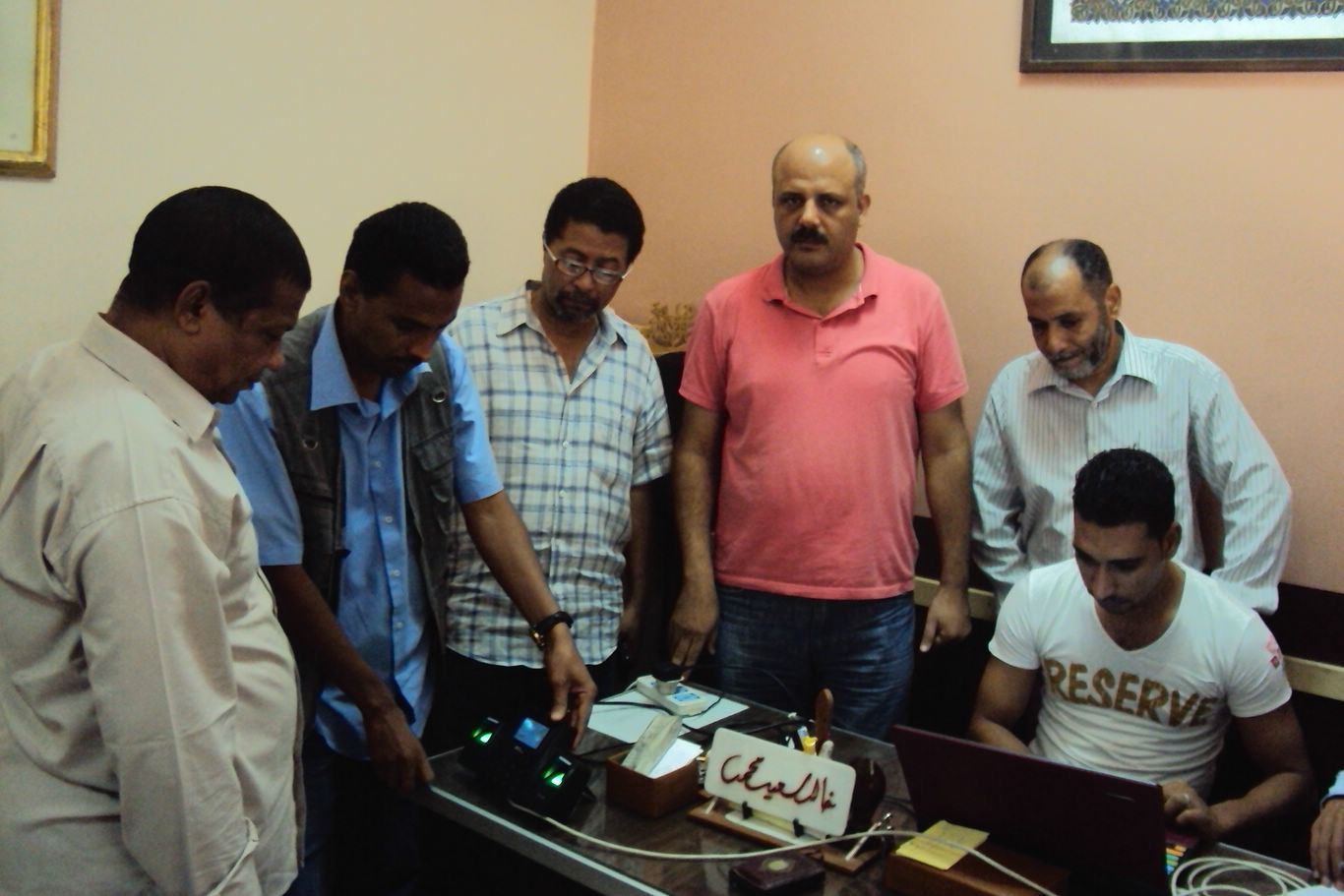 لاول مره بجامعة جنوب الوادى تفعيل نظام الحضور والانصراف بنظام القارى الالكترونى (البصمة) وتبدا بكلية الفنون الجميلة بالاقصر وذلك بحضور السيد الاستاذ الدكتور/ أحمد عرابى عميد الكلية والسيد الاستاذ حسن يوسف عبدالرازق مدير عام الشئون الادارية بالجامعة والسيد الاستاذ امين الكلية ويعاونهم فريق من مهندسى مركز المعلومات وشبكة الاتصالات لتوقيع العاملين بنظام البصمة .