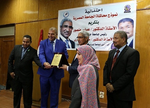 نظم نموذج محاكاة الجامعة المصرية بجامعة جنوب الوادي، احتفالية لتكريم الدكتور عباس محمد منصور، رئيس الجامعة، والدكتور محمود خضاري، نائب رئيس الجامعة لشئون الدراسات العليا والبحوث، تقديراً وعرفاناً بجهودهما في خدمة الوطن والمجتمع والجامعة خلال الفترة السابقة، وذلك بحضور د.محمد أبوالفضل بدران نائب رئيس الجامعة لشئون التعليم والطلاب، والدكتور يوسف غرباوى نائب رئيس الجامعة لشئون خدمة المجتمع وتنمية البيئة، وعمداء الكليات وأعضاء هيئة التدريس وخريجي نموذج محاكاة الجامعة المصرية. أكد الدكتور عباس منصور رئيس الجامعة، خلال الحفل، على ضرورة الإخلاص والتفانى في خدمة الوطن والمجتمع والجامعة، والعمل بروح الفريق الواحد من أجل تحقيق مصلحة المصلحة العليا للبلاد، ووجه عدة رسائل لمنسقي وخريجي نموذج المحاكاة مطالباً باستمرارية البرنامج في السنوات القادمة لتدريب وإيجاد جيل قادر على تحمل المسئولية، مطالباً الجميع بالتعاون مع رئيس الجامعة القادم لاستكمال مسيرة التنمية التى شهدتها الجامعة بالإضافة إلى التأكيد على دور الجامعة في خدمة المجتمع المحيط. وناشد الدكتور محمود خضاري نائب رئيس الجامعة لشئون الدراسات العليا والبحوث، شباب أعضاء هيئة التدريس بالاستفادة القصوى من الامكانيات المتاحة من أجل استكمال المسيرة في رفع اسم الجامعة بين الجامعات محلياً ودولياً، إلى جانب المشاركة المؤتمرات العملية والتركيز دائماً على الموضوعات البحثية التى تخدم الوطن. وفى كلمته ذكر الدكتور محمد أبوالفضل بدران نائب رئيس الجامعة لشئون التعليم والطلاب، بعض المواقف الإنسانية التي لمسها بشكل مباشر خلال العمل مع الدكتور عباس منصور رئيس الجامعة والدكتور محمود خضاري نائب رئيس الجامعة للدراسات العليا، مؤكداً أن الجامعة حققت العديد من المكتسبات في ظل وجود قيادة حكيمة كانت داعمة بشكل كبير للأنشطة الطلابية والمجالات البحثية. وأكد الدكتور يوسف الغرباوى نائب رئيس الجامعة لشئون خدمة البيئة وتنمية المجتمع، أن كل من تعامل مع د.عباس منصور رئيس الجامعة و د.محمود خضاري نائب رئيس الجامعة للدراسات العليا يدرك جيداً جديتهما وإخلاصهما المتواصل في خدمة الوطن والجامعة والمجتمع، مشيراً إلى العديد من الذكريات التى تؤكد إخلاصهما في العمل. وقال الدكتور حسين عبدالباسط وكيل كلية التربية لشئون الدراسات العليا والمشرف على نموذج المحاكاة بجامعة جنوب الوادى، أن هذه الاحتفالية أعدها منسوبي وخريجي نموذج المحاكاة ليقولوا من خلالها “شكراً” للدكتور عباس منصور رئيس الجامعة والدكتور محمود خضاري نائب رئيس الجامعة للدراسات العليا، على جهودهما المخلصة والمبدعة والحكيمة في خدمة الوطن والمجتمع والجامعة، مؤكداً أن الجهود التي قام بها د.عباس منصور أحدثت تغييراً في المكان والإنسان، وأن التاريخ سيسجلها بأحرف من نور في صفحاته المضيئة، مشيراً إلى السمات الإنسانية والقيادية التي اتسم بها رئيس الجامعة كالرزانة والأدب الجم والخلق الرفيع والابتسامة الهادئة والتواضع وجبر الخواطر، والنزاهة، والإقناع، والقدرة العجيبة على تحفيز الهمم بكلمات بسيطة لها مفعول السحر لدى من يعملون معه، إلى جانب والرؤية والفكر الاستراتيجي والتخطيط والتنظيم والمتابعة، مشيراً إلى أن تلك السمات وبتوفيق الله مكنت د.عباس منصور من خلال رئاسته للجامعة لمدة 13 عاماً من إحداث تحولات نوعية في خدمة الوطن والمجتمع والجامعة. وأشار إلى أن السمات الإنسانية والقيادية التي اتسم بها الدكتور محمود خضاري نائب رئيس الجامعة للدراسات العليا مكنته أيضا من تسجيل بصمات مضيئة وإحداث تحولات نوعية واضحة سيسجلها تاريخ الجامعة في قطاع الدراسات العليا والبحوث من حيث السعي دوما لرفع اسم الجامعة في التصنيفات العالمية وتطوير لوائح الدراسات العليا والبحوث وتطوير وتدويل المجلات العلمية للجامعة، وتنظيم المؤتمرات العلمية المحلية والعربية والدولية في مختلف الجوانب ا