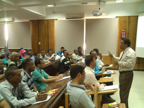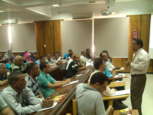 تحت رعاية السيد الأستاذ الدكتور عباس محمد منصور رئيس الجامعة وإشراف السيد الأستاذ الدكتور سيد أحمد محمد طه نائب رئيس الجامعة لشئون خدمة المجتمع وتنمية البيئة تم عقد ورشة عمل خاصة بالسلامة والأمان في المعامل والمختبرات الجامعية حاضر فيها الأستاذ الدكتور أشرف محمد أبو الوفا عميد كلية الصيدلة والدكتور رمضان عبد النعيم أمين الكلية وبمشاركة أخصائيي وفنيي المعامل بالكليات العملية (علوم – طب بيطري – طب بشري – زراعة – صيدلة – زراعة – آثار – تربية) وقد تناولت الورشة طرق الوقاية والأمان والسلامة المتبعة في المعامل وإحتياجات المعامل من وسائل الأمان المختلفة وتم من خلال الورشة الإستماع إلى آراء السادة أخصائيي وفنيي المعامل فيما يواجهونه من مشكلات بأماكن عملهم.
