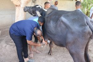 وتابع “نصارى” الى ان القافلة البيطرية قامت ايضا بالكشف على الحيوانات في القرية من قبل أعضاء هيئة التدريس بكلية الطب البيطري وعمل التحصينات اللازمة للحيوانات وإعطاء الإرشادات للأهالي نحو تربية الحيوانات والمحافظة عليهم من الأمراض المختلفة وتم الكشف على عدد ( 211) حالة من الحيوانات المختلفة مثل الجاموس والأغنام والجمال