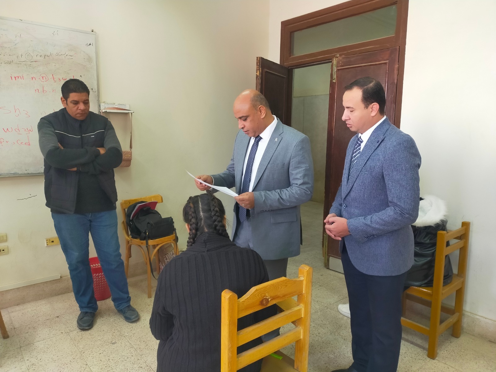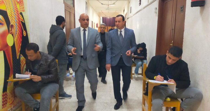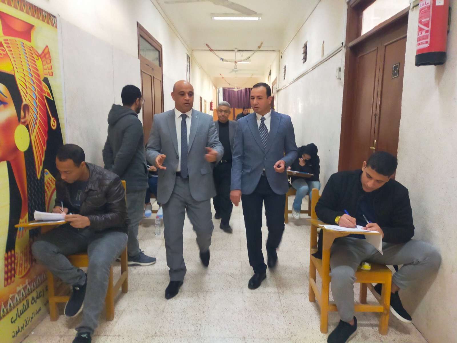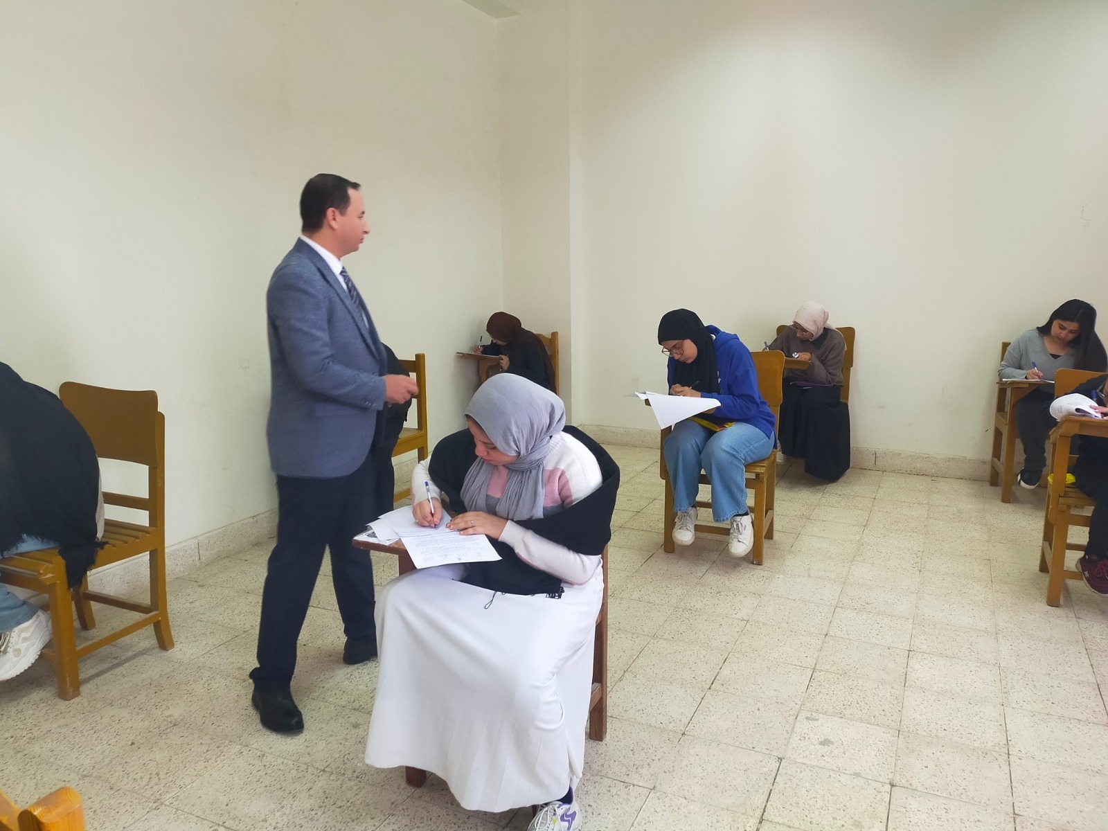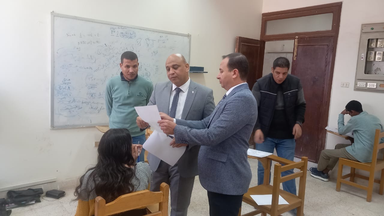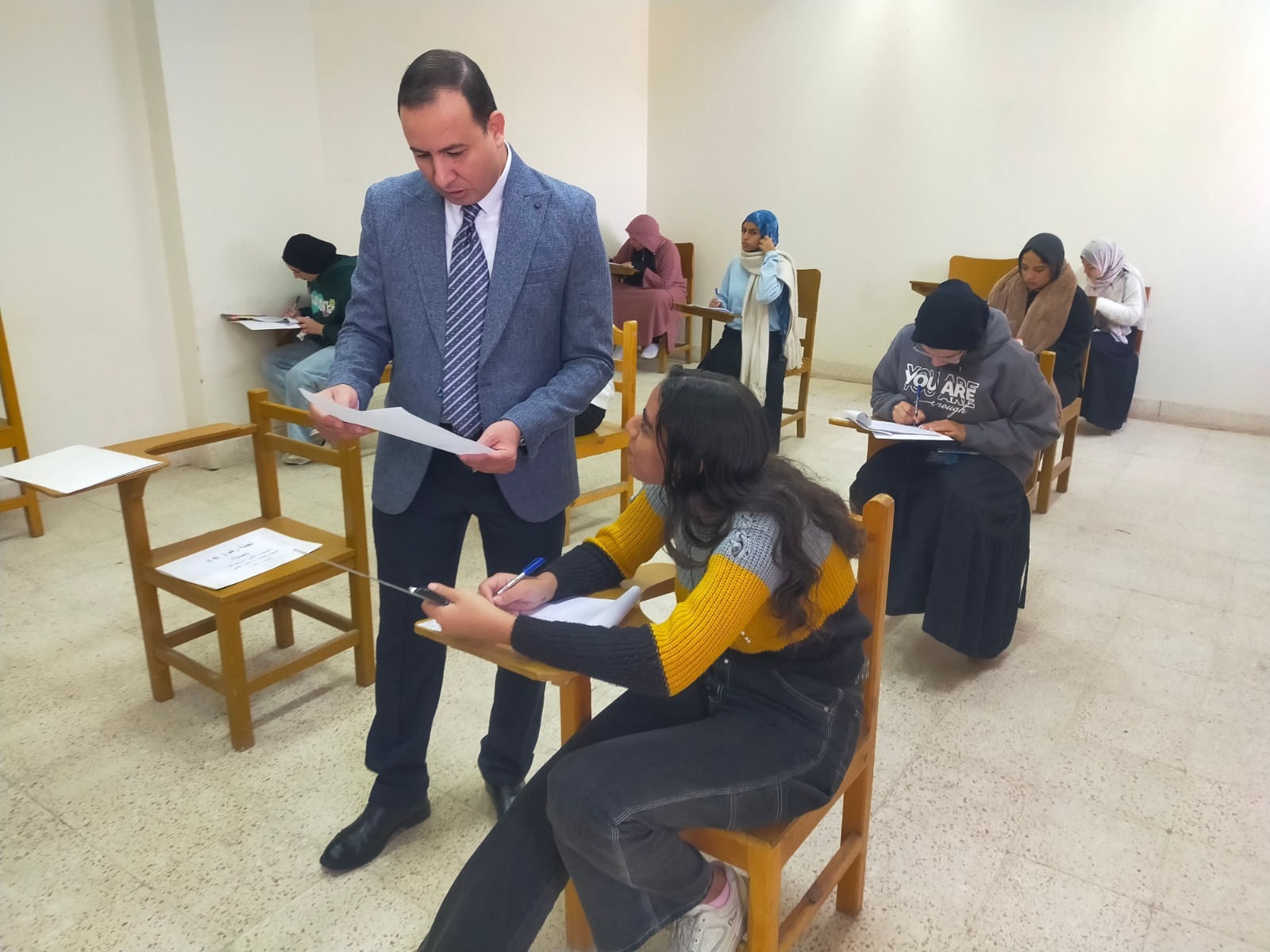 برعاية معالي أ. د. أحمد عكاوي رئيس الجامعة ومعالي أ. د. أشرف موسى نائب رئيس الجامعة لشئون التعليم والطلاب وأ.د.عصام حشمت محمد عميد الكلية وفي إطار المتابعة المستمرة لأعمال الامتحانات بالكلية قام أ. د. أشرف موسى نائب رئيس الجامعة لشئون التعليم والطلاب يرافقه عميد الكلية بتفقد لجان الامتحانات للفرق المختلفة بالكلية للإطمئنان على انضباط اللجان وسير أعمال الامتحانات بشكل منتظم.