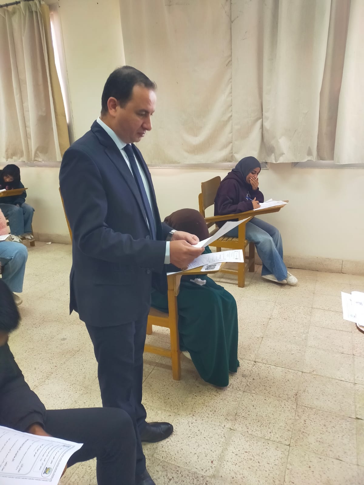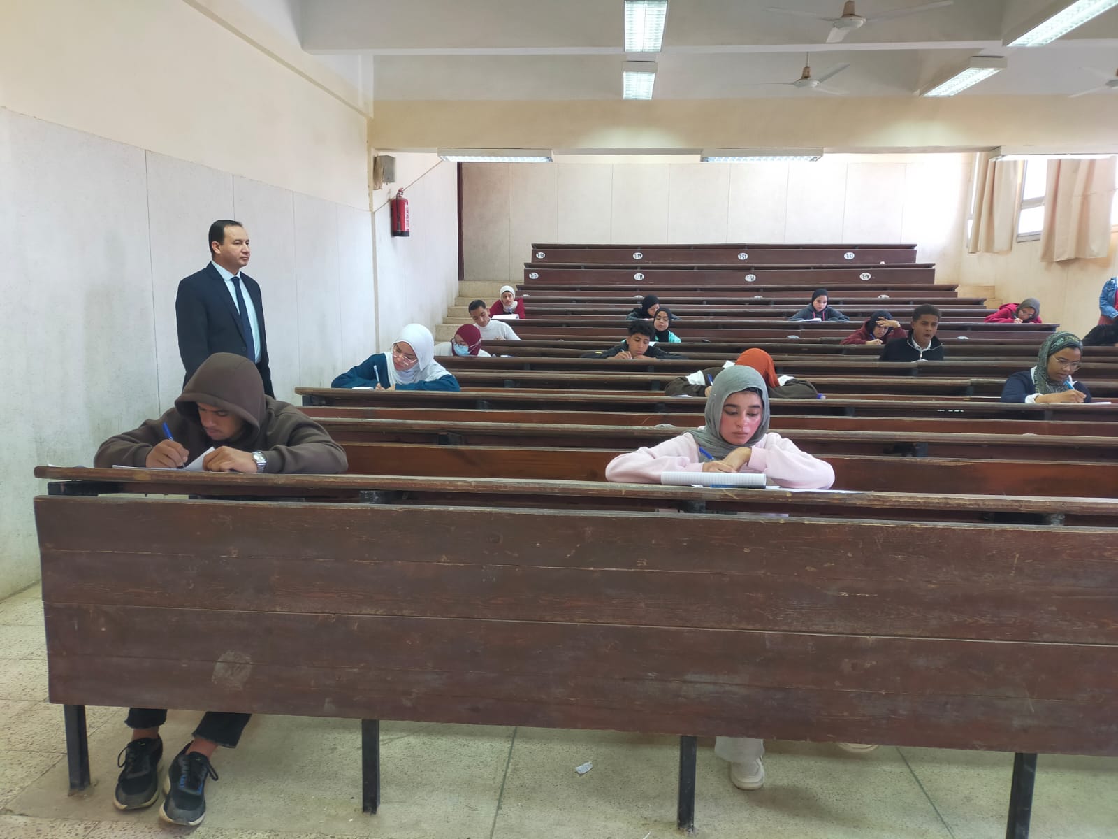 انتهت اليوم الخميس الموافق ١٥ / ١ / ٢٠٢٦م امتحانات الفصل الدراسي الأول بكلية الأثار لجميع الفرق بأقسام الكلية الثلاث وفي إطار المتابعة المستمرة تفقد أ. د. عميد الكلية لجان الامتحانات للإطمئنان على انضباط اللجان وسير أعمال الامتحانات بشكل منتظم