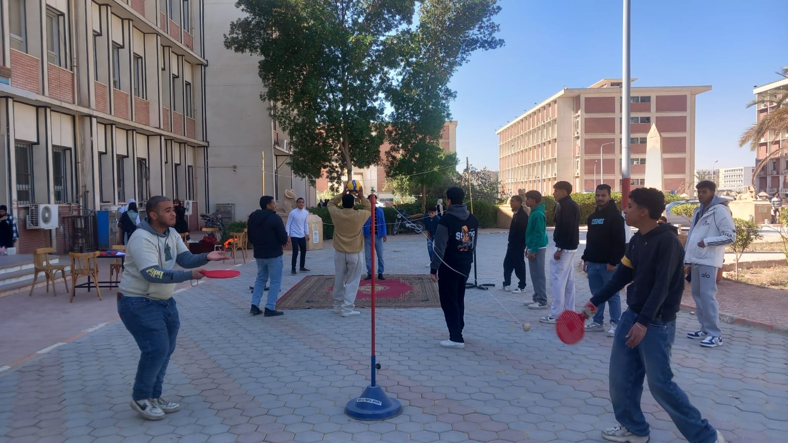 وبعد انتهاء لجان الامتحانات نظمت إدارة رعاية الطلاب بالكلية يوم رياضي ترفيهي لطلبة وطالبات الكلية وذلك بتنفيذ بعض الألعاب الرياضية ( كرة قدم – كرة طائرة – تنس طاولة – شطرنج – شد الحبل – كرة سرعة) بمشاركة عدد من أعضاء هيئة التدريس ومعاونيهم والاداريين وفي هذا الصدد تتوجه إدارة الكلية بالشكر الي الأستاذ / طارق السيد أمين الكلية والأستاذ / السيد الجربوعي مدير رعاية الطلاب والأستاذة / هناء محمود.