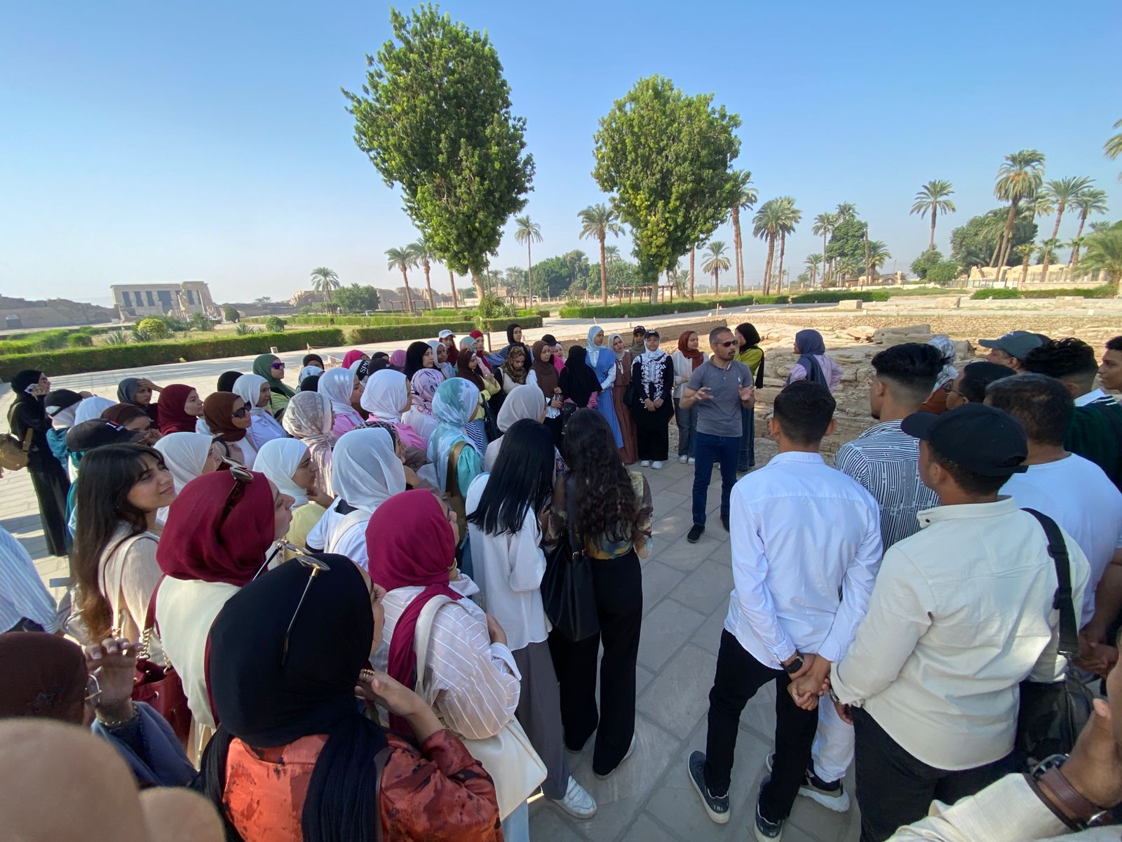 وفي هذا الصدد تتوجه إدارة الكلية بالشكر لجميع القائمين على هذه الجولة العلمية فالشكر للسيد د حسين عبده المدرس بقسم الآثار المصرية والسيد ا / أشرف محمد رمضان المدرس المساعد بقسم الآثار الإسلامية والأستاذة / روان السيد المعيدة بقسم الآثار المصرية والأستاذة / آية فخري المعيدة بقسم ترميم الآثار.