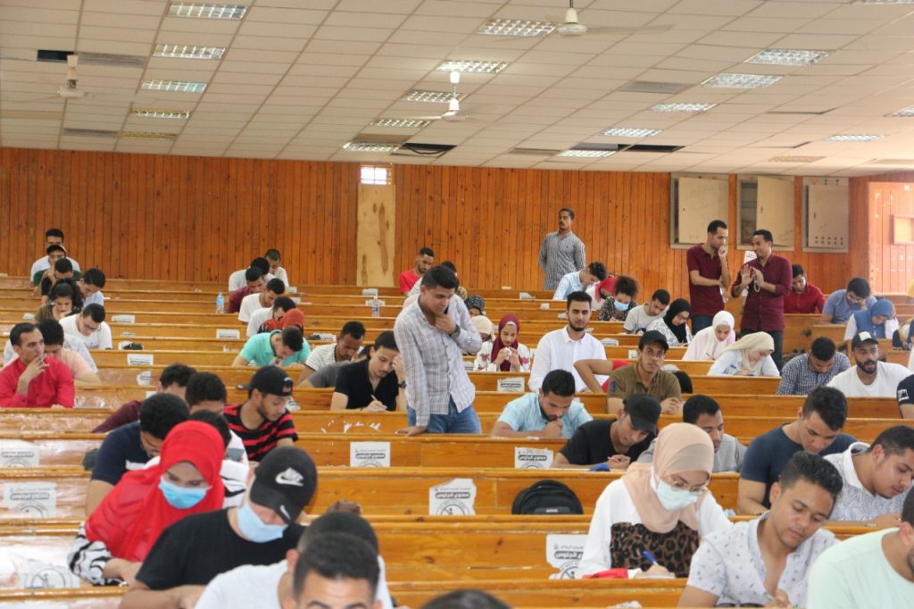 وتابع نواب رئيس الجامعة التزام الطلاب بإتباع الاجراءات الاحترازية و التباعد و تواجد اساتذة المادة للرد على اي استفسارات و توفير كافة سبل الراحة للطلاب في اللجان و توفير التهوية اللازمة و المراوح نظرا لارتفاع درجة الحرارة و تواجد اللجان الطبية للتعامل مع اي حالات مرضية.