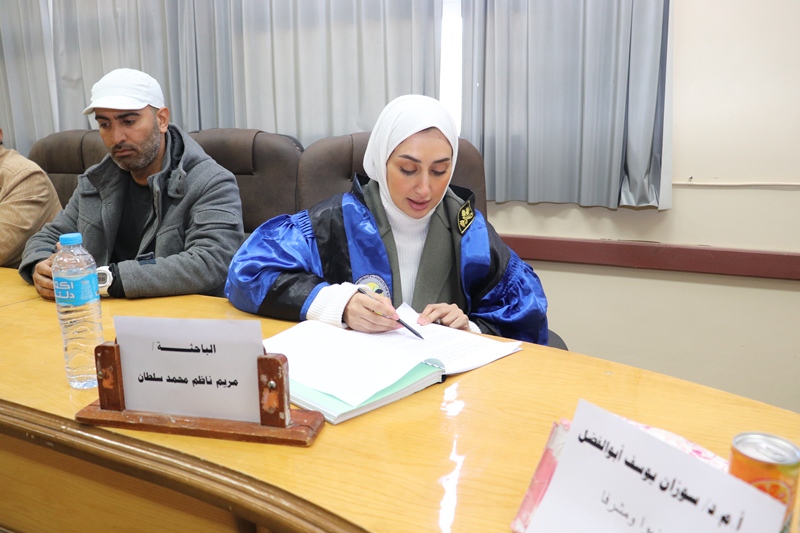 تمت مناقشة رسالة الماجستير للباحثه مريم ناظم محمد سلطان محمود المسباح