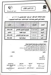 جدول امتحانات الفرقة الثانية(جميع الشعب) بالمعهد الفني الصحي للعام الجامعي 2025/2026 Posted on December 2, 2025December 2, 2025