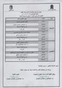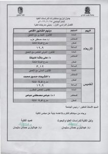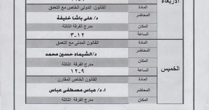 جدول الدراسات العليا بكلية الحقوق القانون العام والقانون الخاص للعام الجامعى 2025 / 2026م