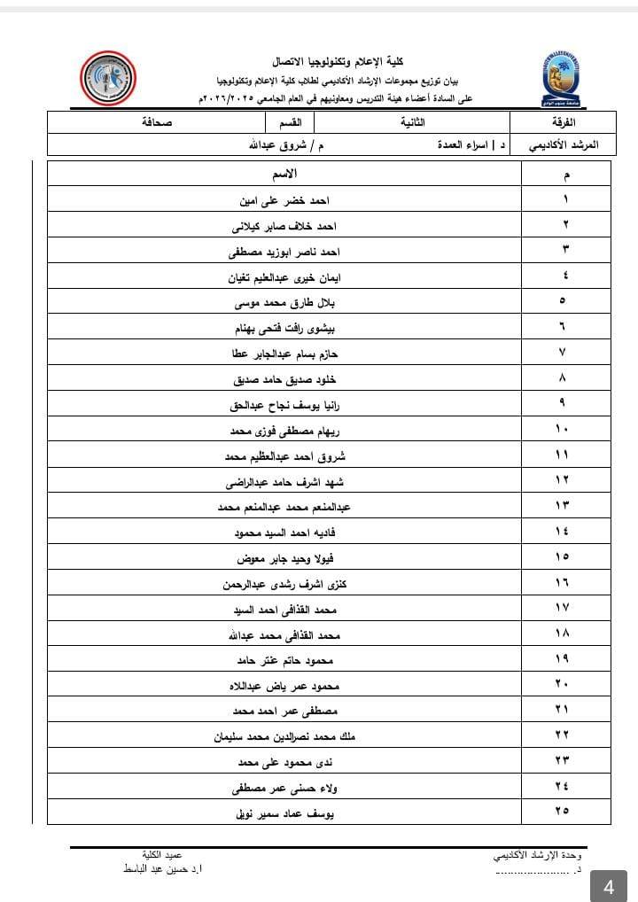 تعلن جامعة جنوب الوادي عن بدء تكوين الأسر الطلابية للعام الجامعي 2025 / 2026 وفق الشروط المنظمة والمعلنة في رعاية الشباب بالكلية، الرجاء الالتزام بتطبيق الشروط بما يضمن روح التعاون […]