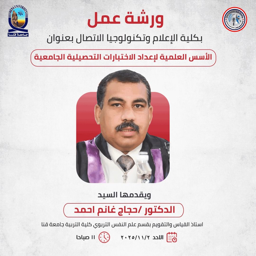 تحت رعاية الأستاذ الدكتور أحمد عكاوي رئيس جامعة قنا، والأستاذ الدكتور حسين عبدالباسط عميد كلية الإعلام وتكنولوجيا الاتصال، تنظم الكلية ورشة عمل بعنوان “الأسس العلمية لإعداد الاختبارات التحصيلية الجامعية”، وذلك […]