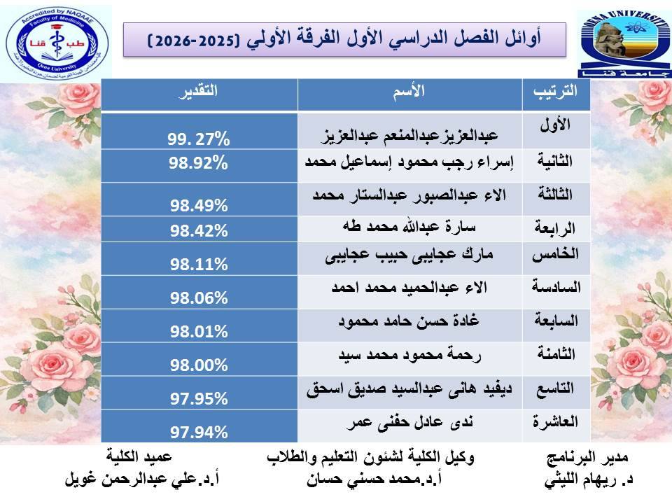 كلية طب قنا - حاصلة على الإعتماد والجودة 2021