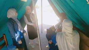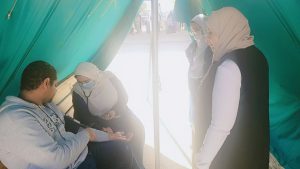 استمرار مشاركة طلبة وطالبات كلية التمريض في الخيم التمريضية موزعة داخل الجامعة وبمتابعة ا.م.د. فاطمة محمد العيسوي وكيل الكلية لشؤون خدمة المجتمع وتنمية البيئة حيث قام الطلاب بنشر الوعي والتثقيف الصحي وذلك بتناول عدد من الموضوعات الهامة بالاضافة الي توزيع المطويات وقياس الضغط والسكر والوزن.
