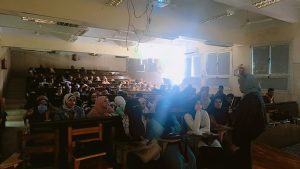 حيث قامت ا. رحاب احمد جلال اخصائية بقسم تمريض المسنين بالقاء ندوة عن تغير المناخ وتأثيره على الصحة حيث تناولت تعريف تغيّر المناخ وأسباب الاهتمام العالمي به ودور المنظمات الدولية مثل منظمة الصحة العالمية في التحذير من مخاطره الصحية.