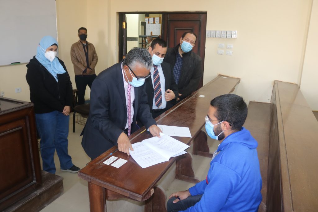 تفقد صباح اليوم السيد الأستاذ الدكتور يوسف غرباوى رئيس الجامعة لجان الأمتحانات بكلية الصيدلة وتحدث سيادته مع ابناءه الطلاب داخل اللجان التى تفقدها رافقه فى الزيارة السادة النواب الأستاذ الدكتور أحمد عكاوى نائب رئيس الجامعة للدراسات العليا والبحوث والسيد الأستاذ الدكتور أحمد كمال نصارى نائب رئيس الجامعة لشئون البيئة وخدمة المجتمع كان فى استقبال سيادتة السيد الاستاذ الدكتور أشرف محمد ابوالوفا عميد الكلية والسيد الأستاذ الدكتور محمد حسنى حسان وكيل الكلية لشئون التعليم والطلاب والسيد الدكتور رمضان عبد النعيم أمين الكلية