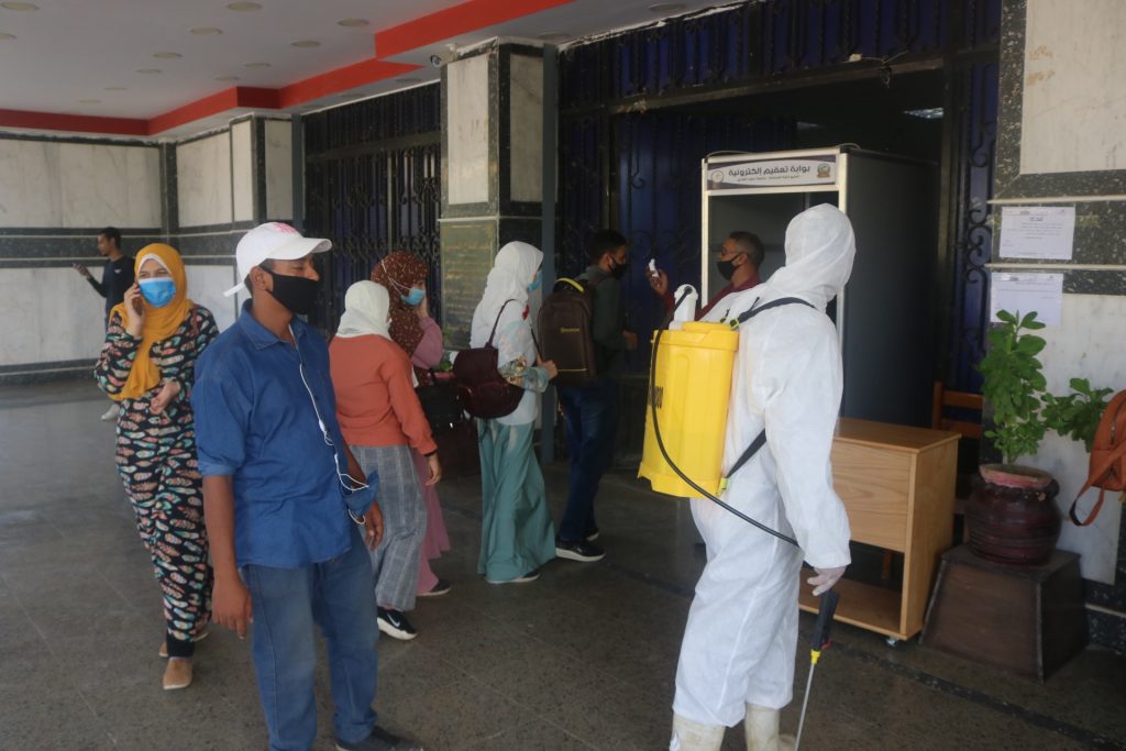 الأستاذ الدكتور أشرف أبو الوفا يشدد على تطبيق كافة الأجراءات الأحترازية داخل الكلية بالمعامل وقاعات المحاضرات والمكاتب الادارية والمكتبة وتعقيم جميع الأماكن داخل المبنى بصفة يومية وذلك جرصاً على المحافظة على الصحه العامة وتطبيق لقرارات مجلس الوزارء وتعليمات رئيس الجامعة والأستاذ الدكتور أحمد كمال نصارى نائب رئيس الجامعة لشئون البيئة وخدمة المجتمع