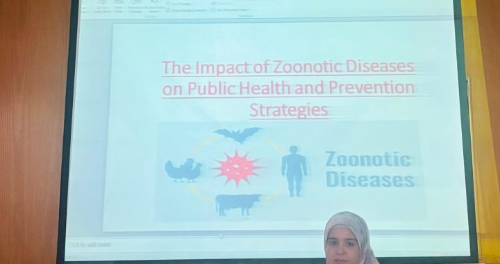 تحت رعاية السيد الاستاذ الدكتور/ احمد عكاوى رئيس الجامعة و السيد الاستاذ الدكتور/ اشرف موسى نائب رئيس الجامعة لشئون التعليم والطلاب و تحت اشراف السيد الاستاذ الدكتور/اشرف الغنيمى نظمت كلية الطب البيطرى ندوة عن “تأثير الأمراض المشتركة بين الإنسان والحيوان على الصحة العامة وطرق الوقاية منها” تُعدّ الأمراض المشتركة بين الإنسان والحيوان ، من أبرز التحديات الصحية التي تواجه المجتمعات في مختلف أنحاء العالم. فهي تمثل مصدرًا رئيسيًا لعدد كبير من الأمراض المعدية التي تصيب البشر، نظرًا لكونها تنتقل مباشرة أو غير مباشرة من الحيوان إلى الإنسان. ومع ازدياد التفاعل بين البشر والحيوانات—سواء في البيئات الريفية أو الحضرية—ازدادت احتمالات حدوث الأوبئة المرتبطة بهذه الأمراض، الأمر الذي يدفع الجهات الصحية إلى تطبيق مزيد من إجراءات الوقاية والمراقبة.