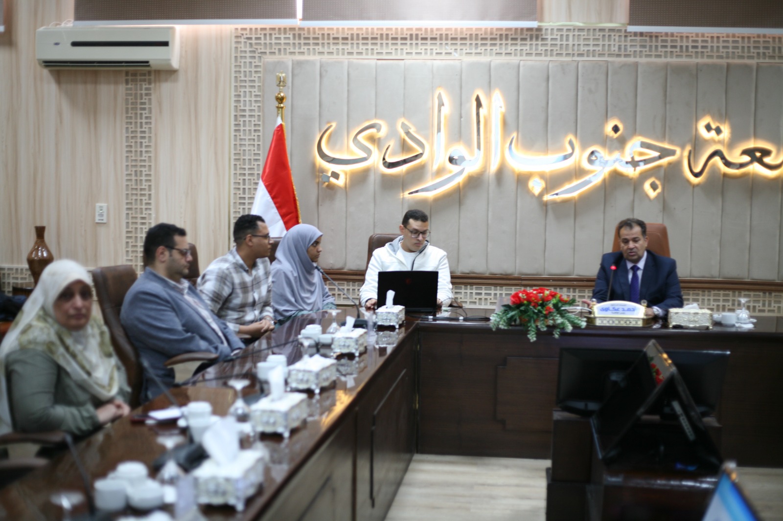 التقى الدكتور أحمد عكاوي رئيس جامعة جنوب الوادي مع فريق عمل التطبيق الالكترونى للإعارات…المزيد