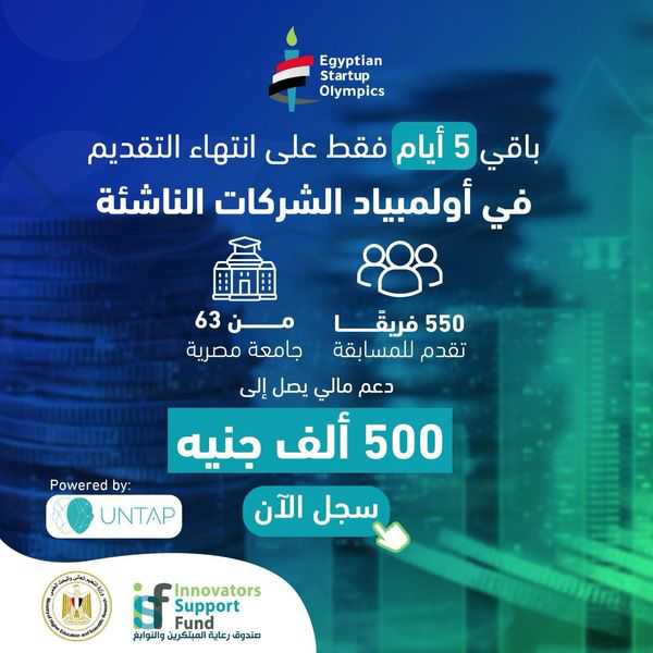 5 أيام فقط تفصلنا عن التقديم فى اولمبياد الشركات الناشئة هل أنت طالب او…المزيد