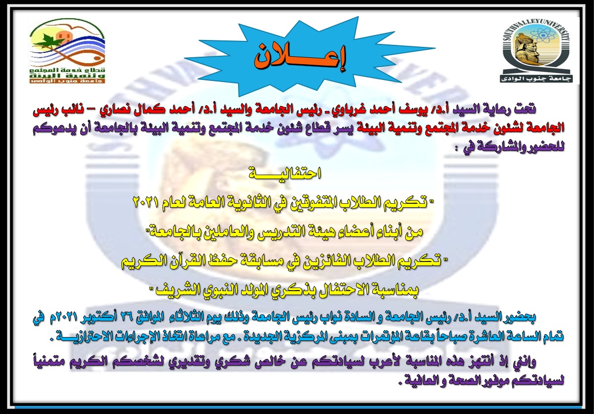 فى ظل توجيهات الدكتور يوسف غرباوي رئيس جامعة جنوب الوادى على تذليل كافة العقبات…المزيد