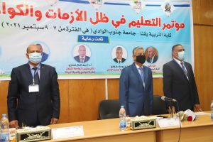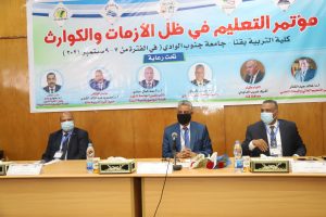 افتتح بجامعة جنوب الوادى مؤتمر التعليم فى ظل الأزمات والكوارث تحت رعاية الدكتور خالد عبدالغفار وزير التعليم العالى والبحث العلمي والدكتور طارق شوقى وزير التربية والتعليم واللواء أشرف الداودى محافظ قنا والدكتور يوسف غرباوى رئيس الجامعة والدكتور أحمد كمال نصارى نائب رئيس الجامعة لشئون خدمة المجتمع وتنمية البيئة والدكتور محسوب عبد القادر عميد كلية التربية بقنا ورئيس المؤتمر وبحضور الدكتور أحمد عكاوى نائب رئيس الجامعة لشئون الدراسات العليا والبحوث والدكتور بدوى شحات نائب رئيس الجامعة لشئون التعليم والطلاب ، وذلك فى الفترة من 7 – 9 سبتمبر 2021 بمقر الجامعة بقنا