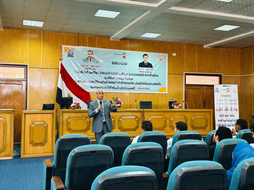 في إطار حرص جامعة جنوب الوادي على تنمية وعي طلابها وبناء قيادات شبابية واعية، نظم مركز القيادات الطلابية بالجامعة مجموعة من الندوات التوعوية برعاية الدكتور أشرف صبحي وزير الشباب والرياضة والدكتور أحمد عكاوي رئيس الجامعة، وإشراف الأستاذ محمد وليد مدير عام الإدارة العامة لرعاية الطلاب وتنفيذ إدارة الأسر الطلابية والاتحادات الاستاذ محمود كمال مدير الإدارة ، الأستاذ مصطفى فؤاد ، الأستاذ حسن زين