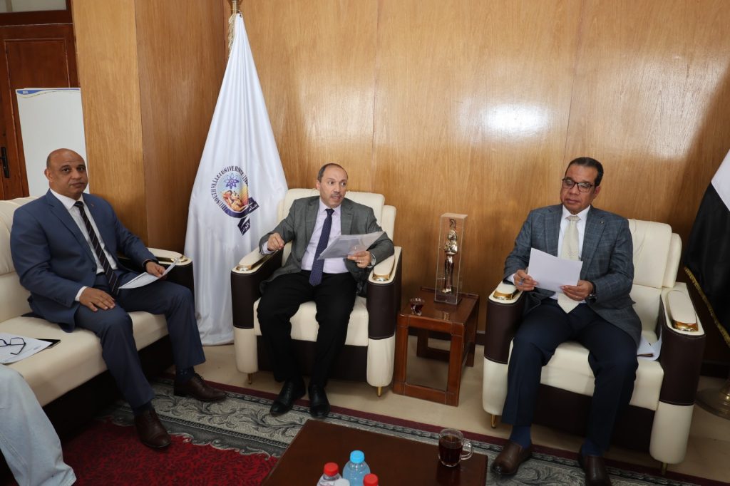 وخلال الاجتماع تم مناقشة ترشيح عدد من الكوادر الجامعية للمشاركة في برامج تدريب وتأهيل القيادات الجامعية، بما يسهم في اكتساب الخبرات اللازمة لمواجهة التحديات المختلفة، وذلك بالتعاون مع المنظمات والمؤسسات الدولية الرائدة وذلك في ضوء الخطاب الوارد من المجلس الأعلى للجامعات بهذا الشأن اتساقا مع التوجهات الوطنية في الاستثمار في العنصر البشري وتنمية مهارات وقدرات القيادات الأكاديمية والإدارية، بما يدعم مسارات التطوير المؤسسي ويرتقي بكفاءة الأداء داخل الجامعات.